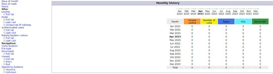 - Estadísticas: Un mal hosting no da ni resultados de estadísticas de visitas al sitio. Este sitio, el que aparece aquí abajo, tiene más de 20 años de creado y se reciben llamadas y correos a diario pero, según el hosting, no ha recibido ni una en el presente años. Ver gráfico: